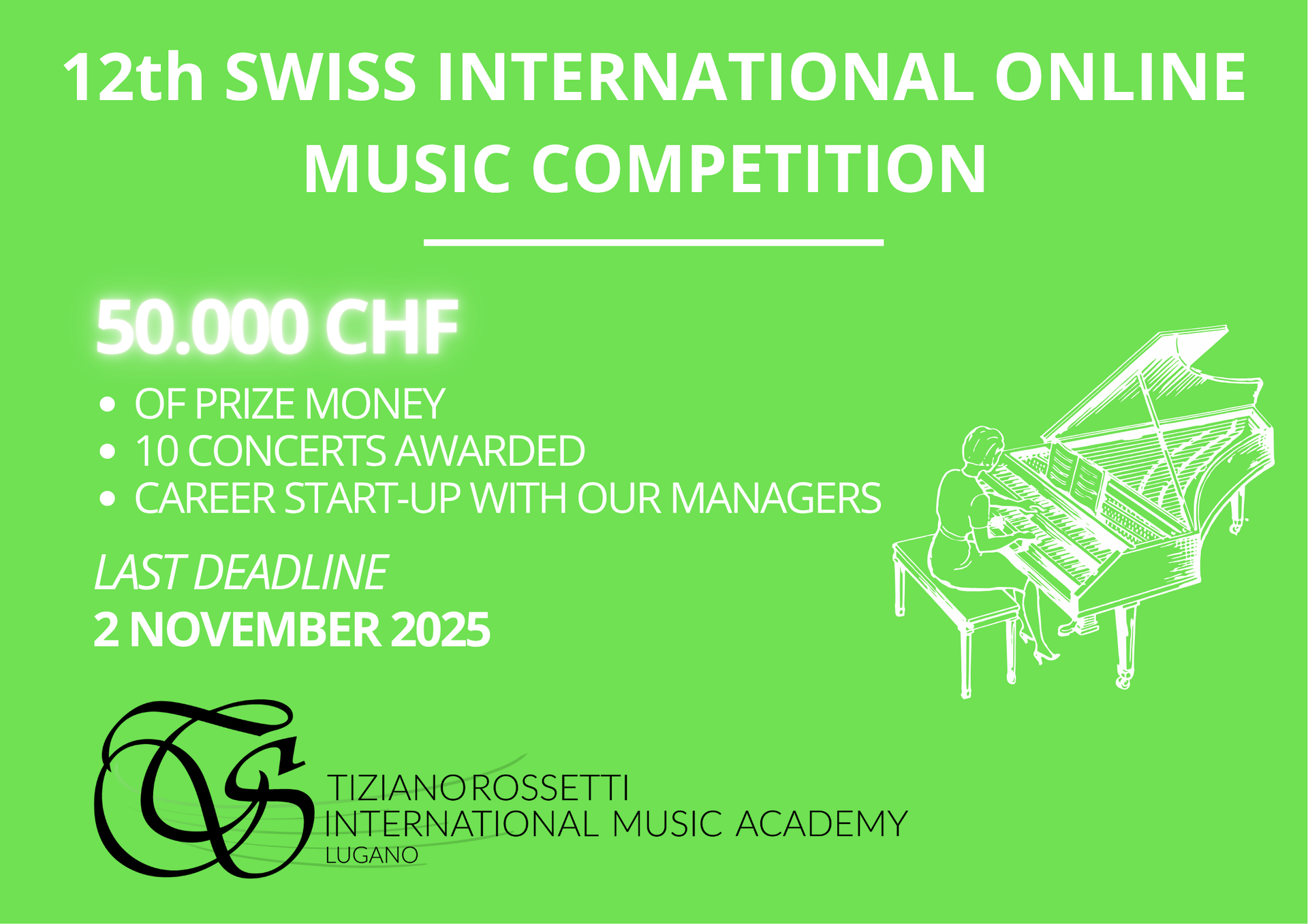 Clicca qui per scaricare il regolamento ufficiale della 12th SWISS INTERNATIONAL ONLINE MUSIC COMPETITION